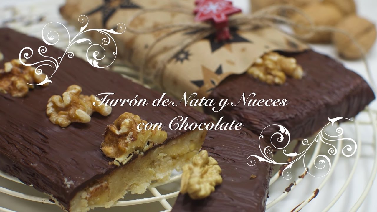 De nueces peladas y cortadas bruscamente 3 medias nueces para decorar PREPARACIÓN. Sin parar de remover lo entibiamos un poco y lo vamos echando sobre el turrón lo extendemos con una espátula o lengua y colocamos encima mitades de nueces. Vamos a poner en el vaso de la thermomix el azúcar glass y la nata y programamos 12 minutos temperatura Varoma y velocidad 3. Dicho lo cual en el blog no queríamos ser menos y aunque ya hemos puesto alguna receta perfectamente aplicable a las fechas que van a venir véase la pierna de cordero rellena de sobrasada así 100 comenzamos hoy con este Turrón de nata con nueces y para que lo hagáis todos en vídeo.